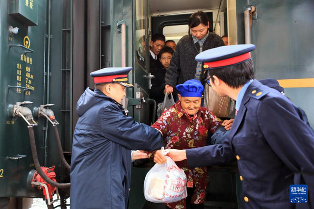 2月25日,村民们在5630次列车上和列车长雷同。穿行在高山高山间的5629/5630次列车,是一回衔接贵州遵义与重庆的公益“慢火车”,开行三十三年来,它以便宜的票价和“站站停”的效能,不仅浅易了沿线全球的普通出行与农货运输,还在车厢里栽植了惠农专区,浅易菜农安置货品及售卖。这趟穿行于渝黔山区的列车成为全部老乡们的“流动集市”,也串起了一条山区全球的出行路与致富路。新华社发(张维摄)